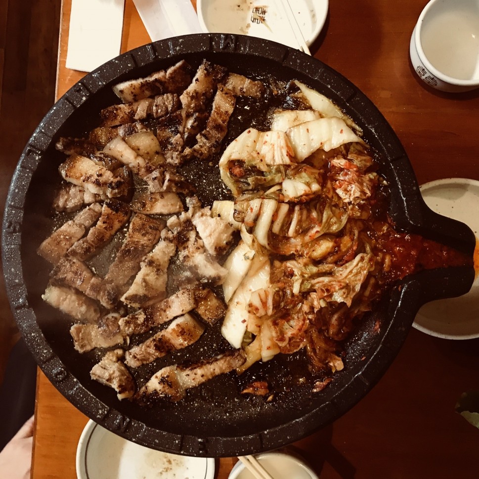 豚の五枚肉を鉄板で炒めて、食べるゴムギャプソル。余分な脂は鉄板から流すので、辛みと旨味だけが残る逸品。