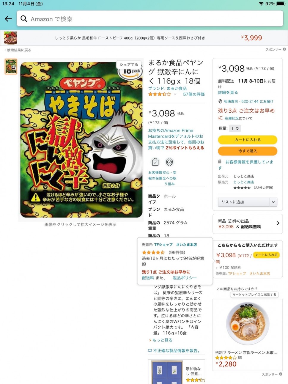 【統合済み】ペヤング 獄激辛にんにく焼きそば 獄激辛