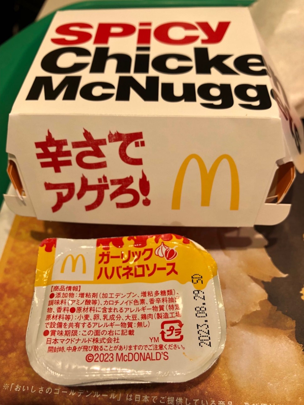スパイシーチキンマックナゲットと合わせて頂きました。ソースにはかなり油分も入ってる分マイルドに感じますがしっかり辛味は感じられました。ナゲットのソースの中でダントツで好きです。レギュラーにして欲しい。ポテトやバーガーに付けても美味しいと思います!ごちそうさまでした。