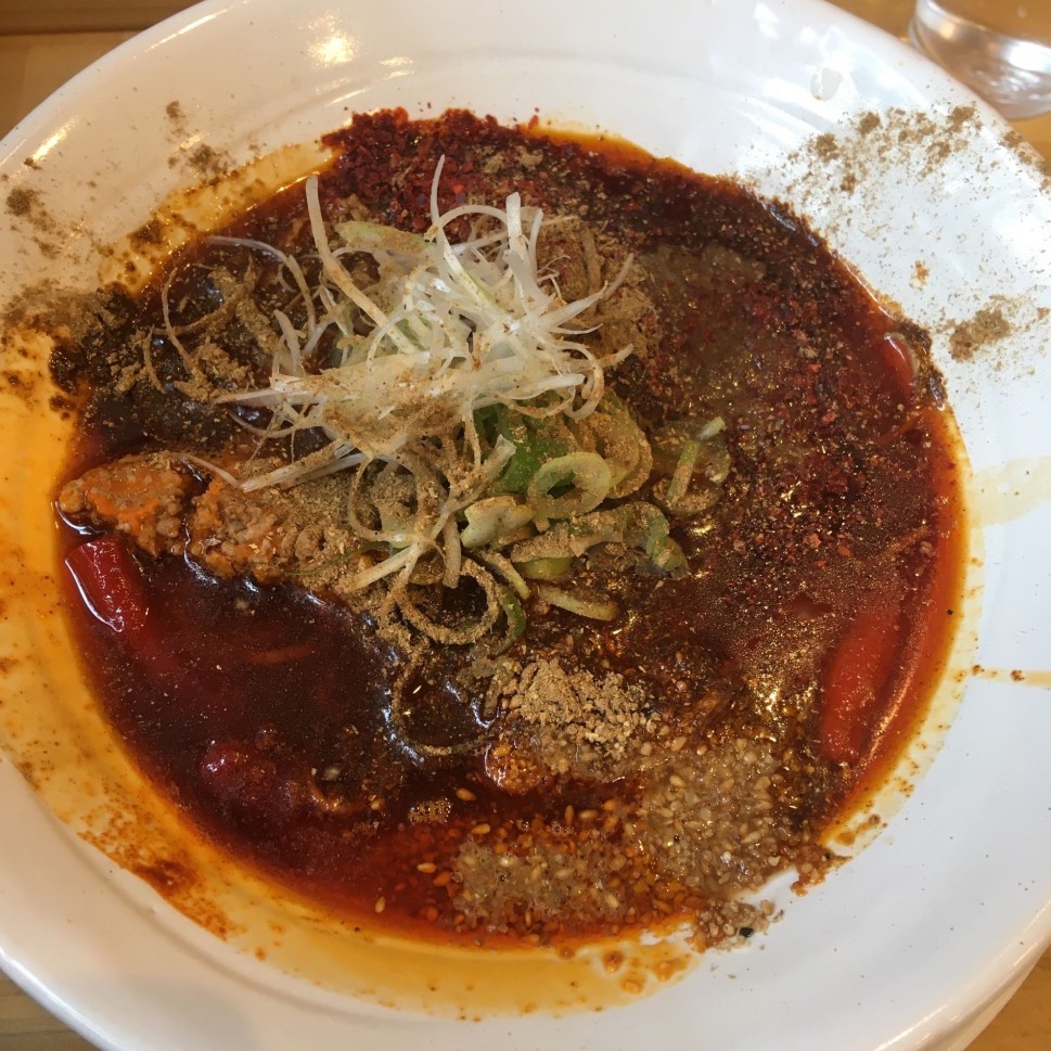 担々麺です。 シェフコージの大親友が作った辣油と 地元の山椒のコラボレーション。 辛いもん大好きなシェフコージの奥さんを唸らせる逸品。