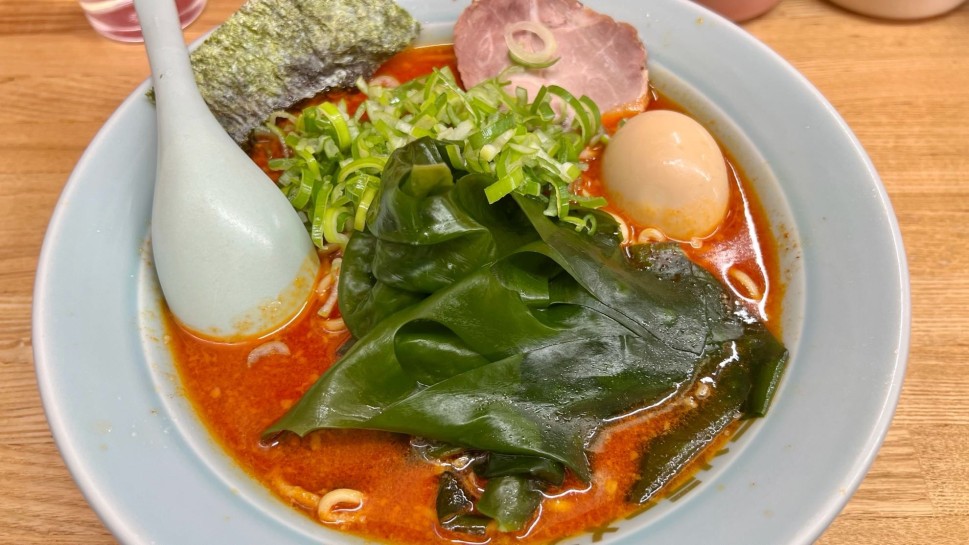 今日の地獄ラーメンは真ん中にワカメがどーんと