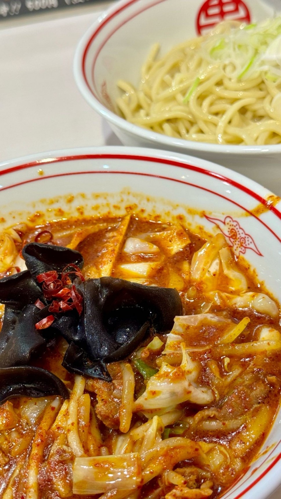 野菜の下につけ汁だけれど、野菜がたっぷり汁と和えてあるので、野菜と麺と一緒に食べれば辛さも楽しめます
