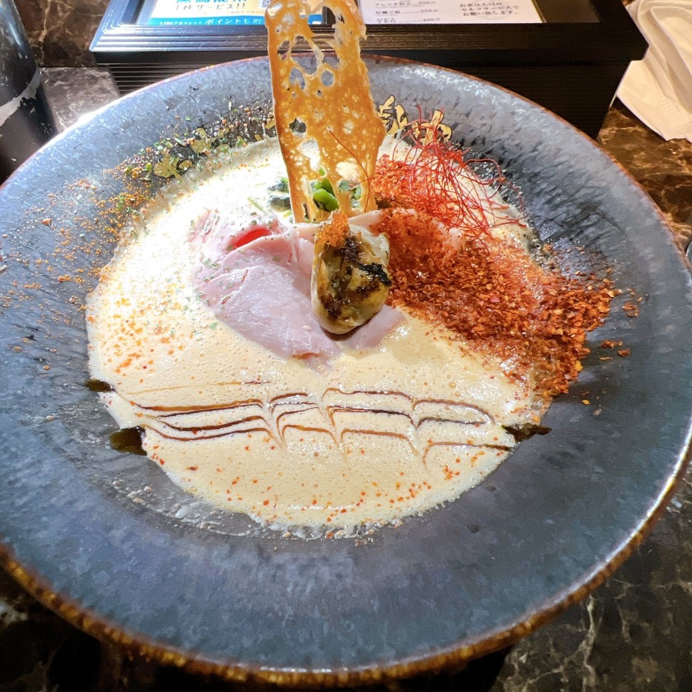 ラーメンとフレンチを融合した中野の人気店です。辛さはもちろん最辛にしましたがこれが想像以上に辛く、豆乳スープのマイルドなイメージを想像すると裏切られる刺激の強い辛さでした。