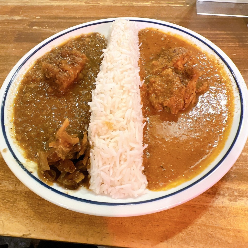 高円寺大一市場の中にあるスパイスカレーのお店です。写真はチキンカレー(右)との2種盛りですが、ここではポークビンダルーのみをジャッジの対象とします。