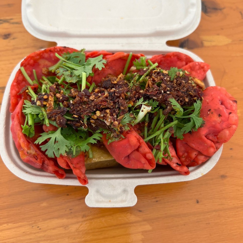 パクチーは個人的には苦手ですが、これは初めて辛さとマッチしているように感じました。餃子の味に合っているということでしょう。