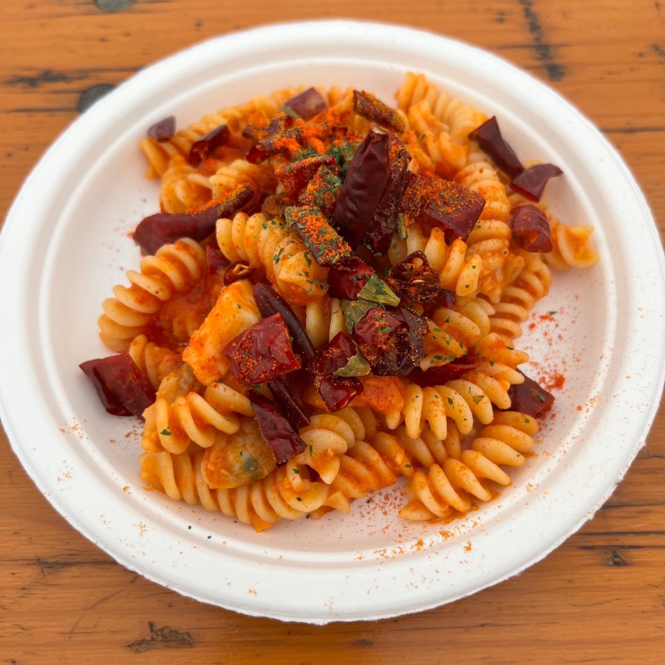 唐辛子を丸ごと大量にまぶして辛さを増しており、トマトソースとよく合った辛さを打ち出しています。これはいいですね。