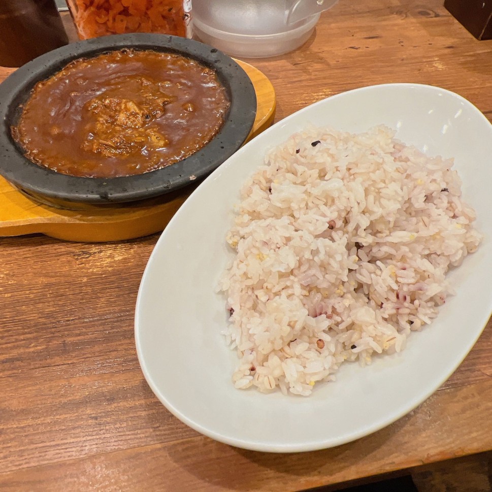 辛さはもちろん最辛の超激辛にしました。鉄鍋で熱々な分だけ辛さが増強され、個人的にはCoCo壱の10辛より少しだけ辛いかという印象でした。オーダーから提供までの時間が早く、ライス量と辛さ増しの追加料金がないのはいいですね。