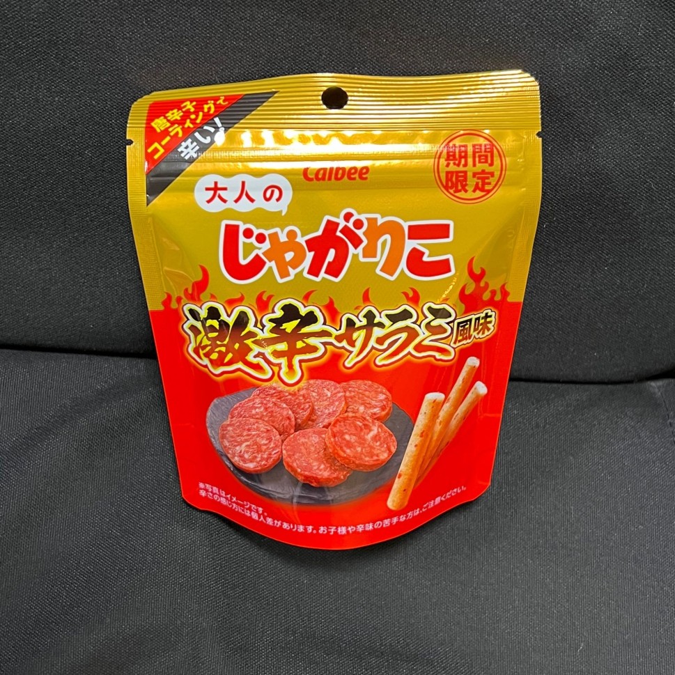 確かにこれはサラミの味をうまく落とし込んでますね。パッケージほどの激辛ではありませんが程よい辛さで美味しかったです。酒が進む味ですね。