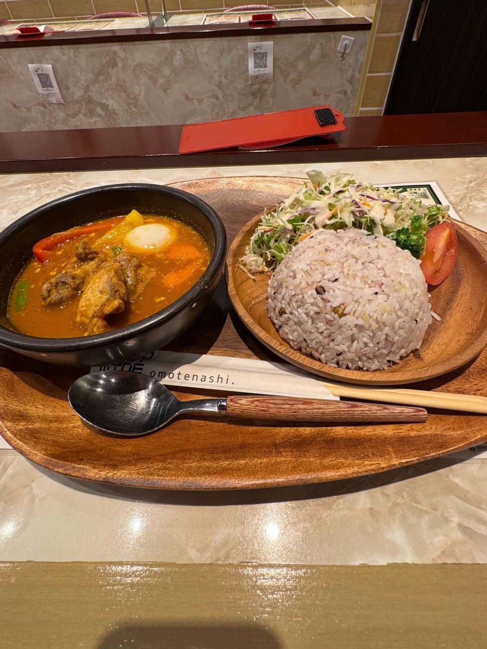 以前は焼きカレーを売りにしていましたがメニュー改定で終売となり、現在は欧風カレー、豆乳トマトカレー、スープカレーの3本柱でやっているお店です。何の情報もなく前を通りかかって何気なく入り、唯一辛さレベルを選択できるスープカレーに。