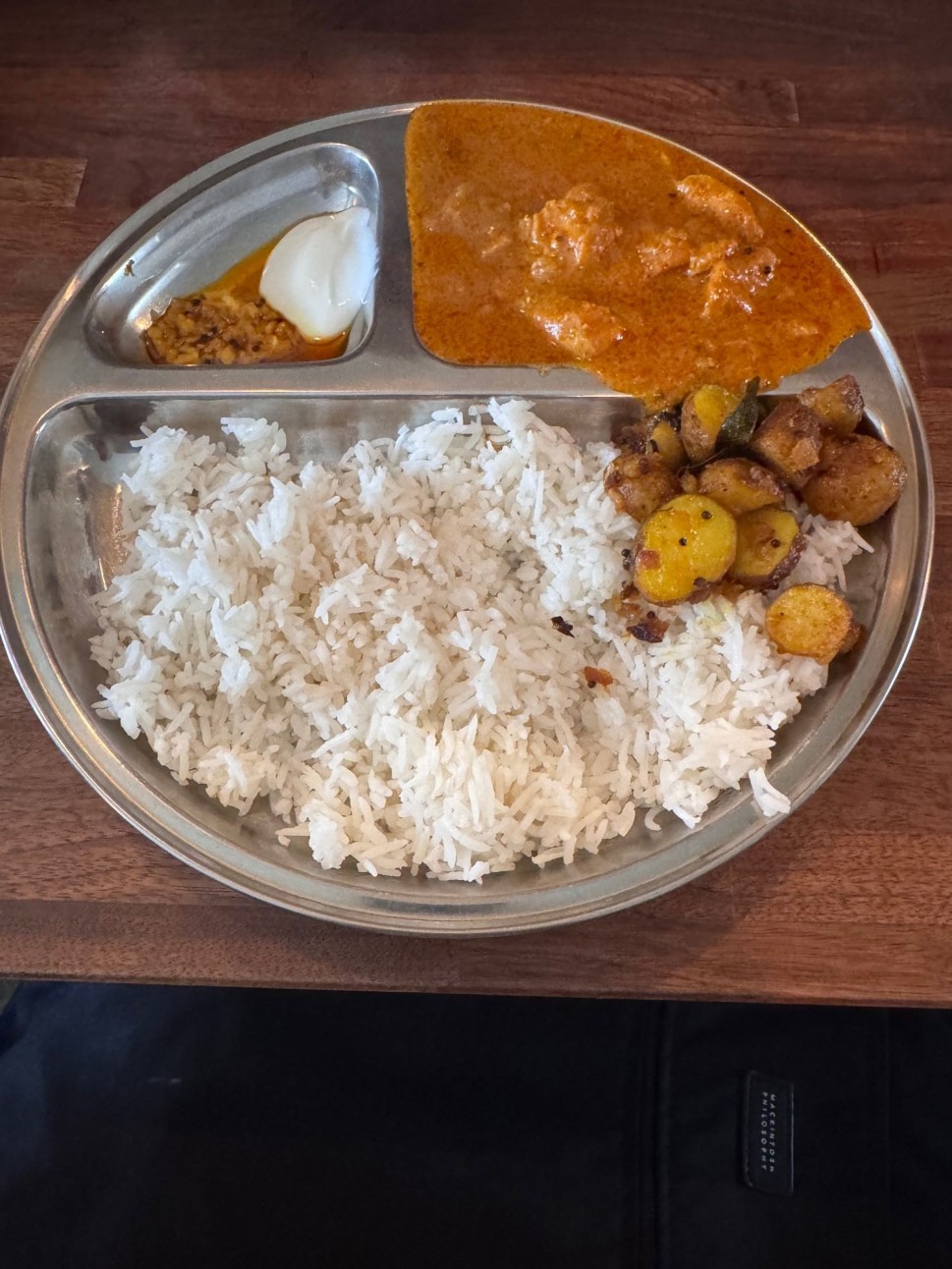 カレー激戦区の大久保にあるお店で、注文時に念押しが入りますが、心地よいスパイシーで鋭い辛さを味わえました。個人的には大盛りでルーの量とのバランスが取れたような気がします。美味しかったです。