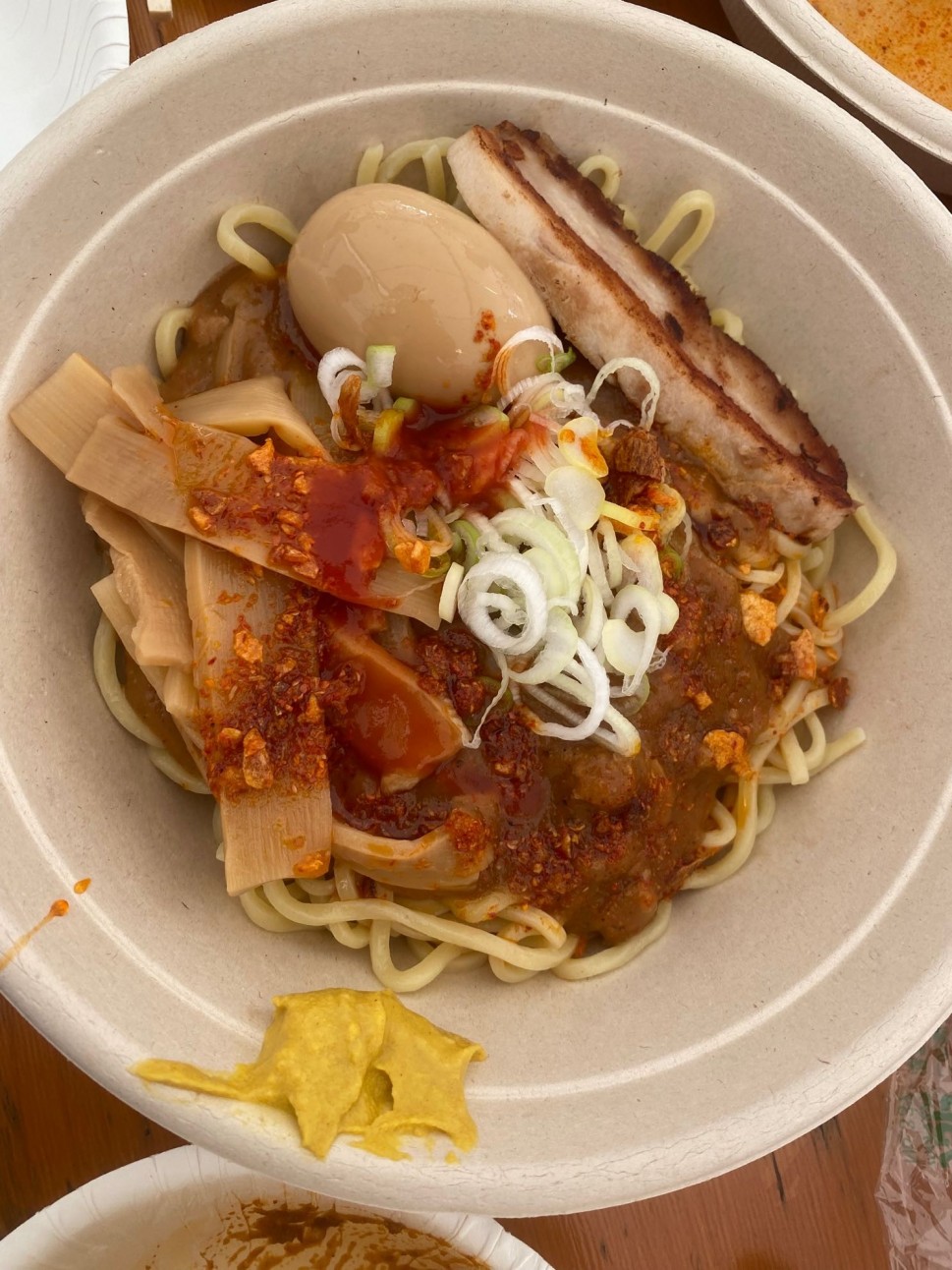 大好きな蒙古タンメン中本が出店したので2日連続行ってきた❤️🔥多分お店でいうと辛さ3くらい??辛みは感じなかったけど美味しかった😋