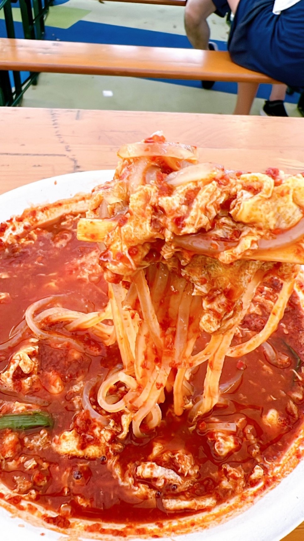 見た目に反してそんなに辛くはないしズルズル食べれる(でも唐辛子なので気管支に入るとむせる...カッコ悪いw)辛いもの好きな人からしたらちょうどいいくらいの辛さかも。食べ終わる頃に辛味がじわじわくる感じです。もっと辛くてもよかったと思う