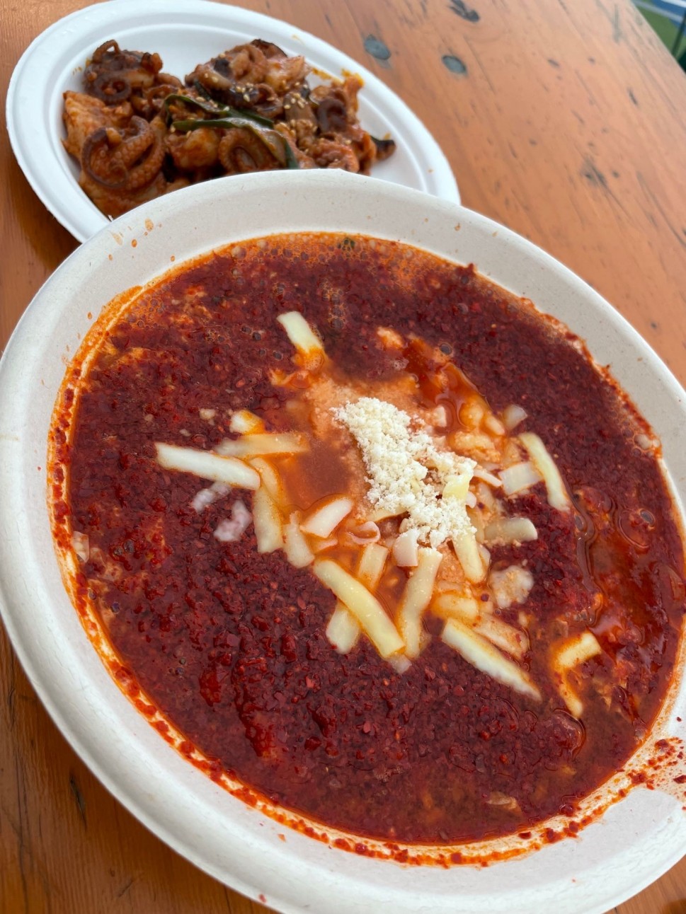 辛さの中にも旨さがある!チーズトッピングで少しマイルドに旨さもアップ!辛さ苦手な方は取り皿をもらって麺をスープから出して食べると食べやすいかも!