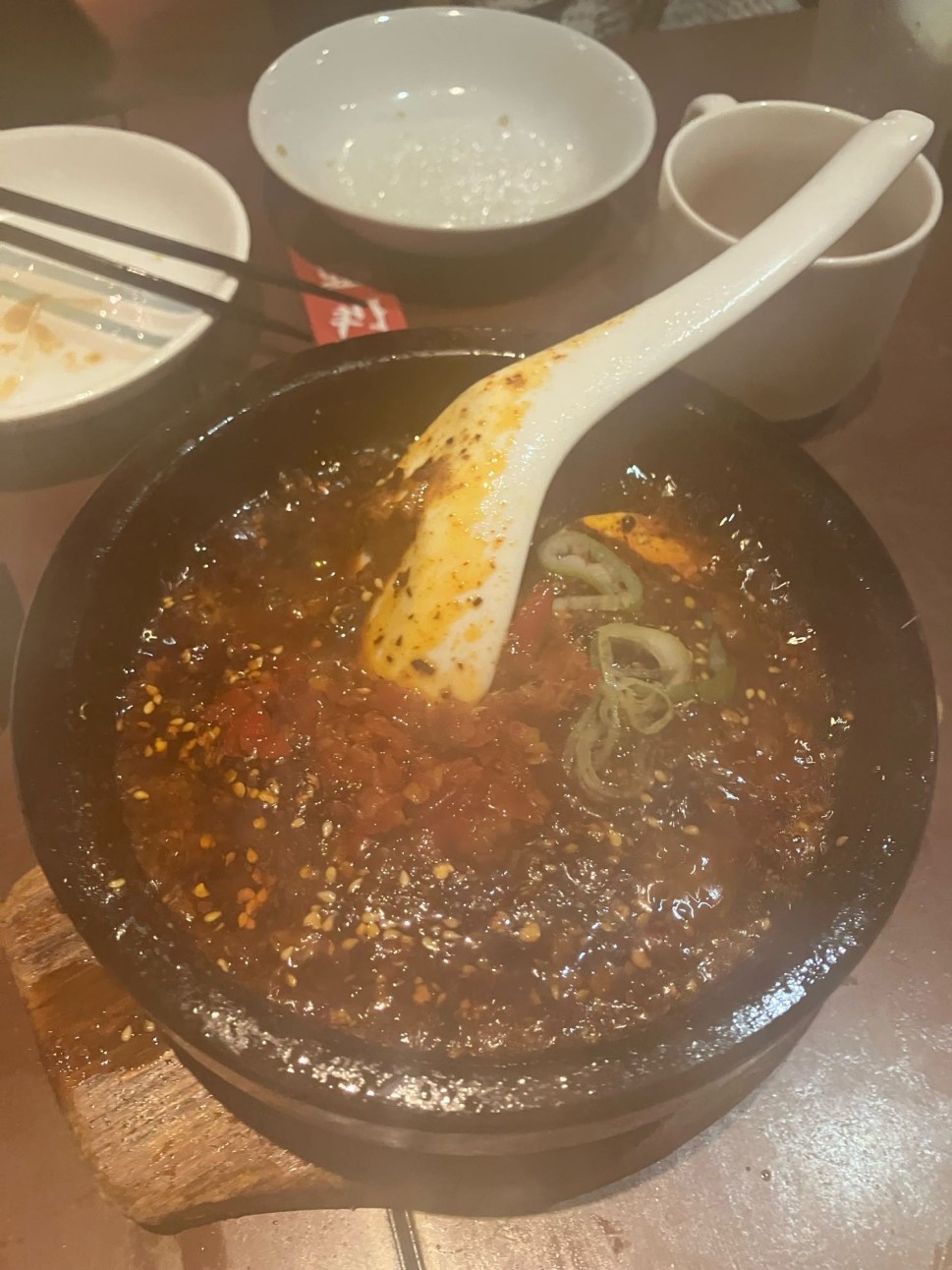 今回は「食べるの大好き❤」三男と一緒なので中辛。食べ飽きない、いつもの美味しさに舌鼓。お供は「超メガ山椒ハイボール」。残りの麻婆豆腐をライスオンしてご馳走様でした〜♬