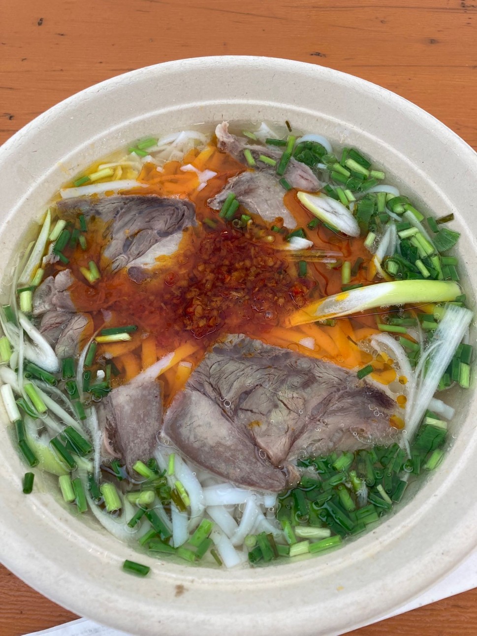 さっぱりしてるのに辛さはしっかりあり。お肉もフォーもたくさん入ってます。そしてスープがとてもおいしい!フォーもつるっとしていて食感がよかったです!すするとむせるよ、、、!