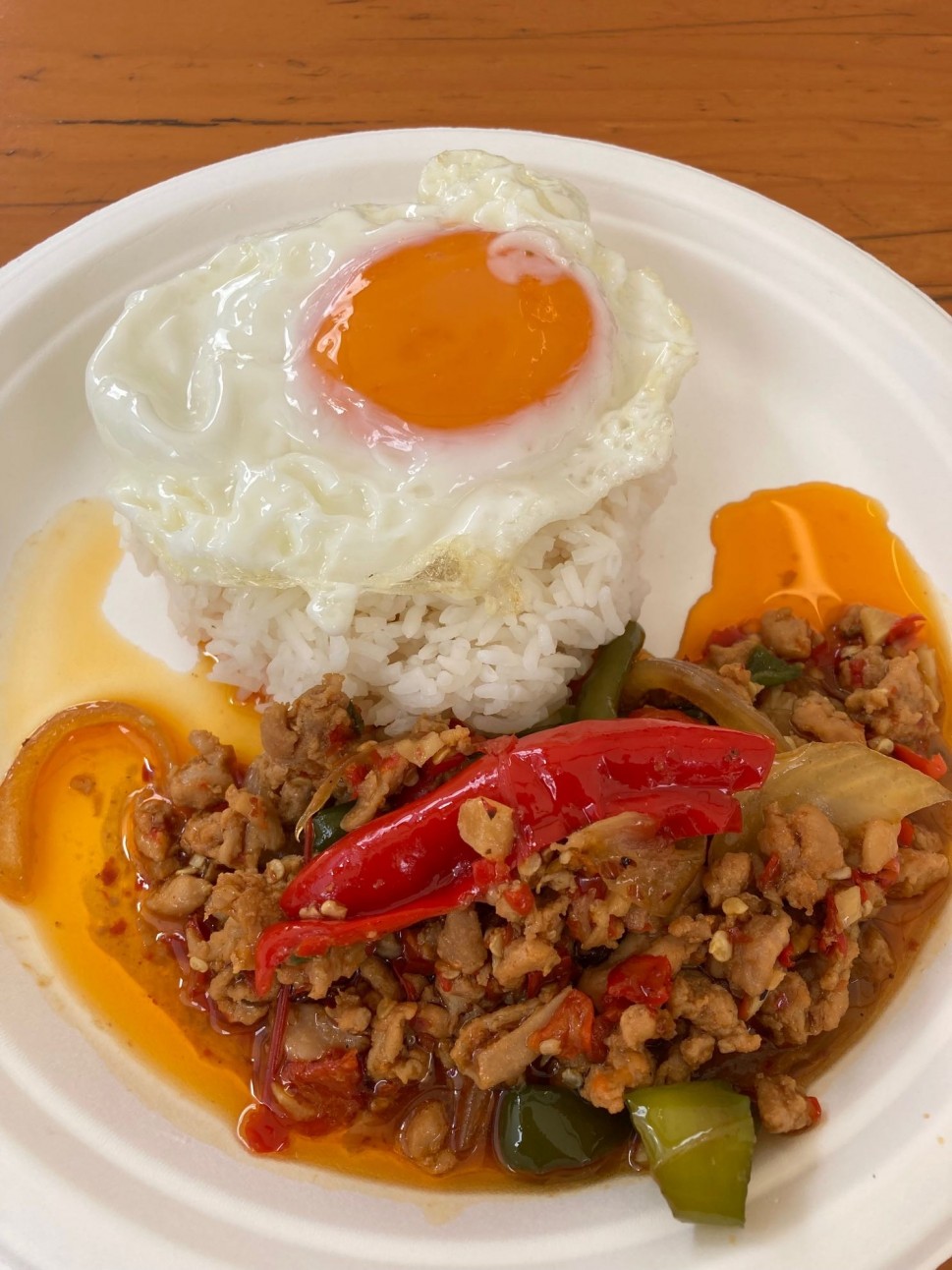 食べ始めはなんともなかったのに、食べ終わるころには口の中がヒリヒリ!カリカリの目玉焼きとエスニックな香りたっぷりのひき肉がご飯にめちゃめちゃ合います!
