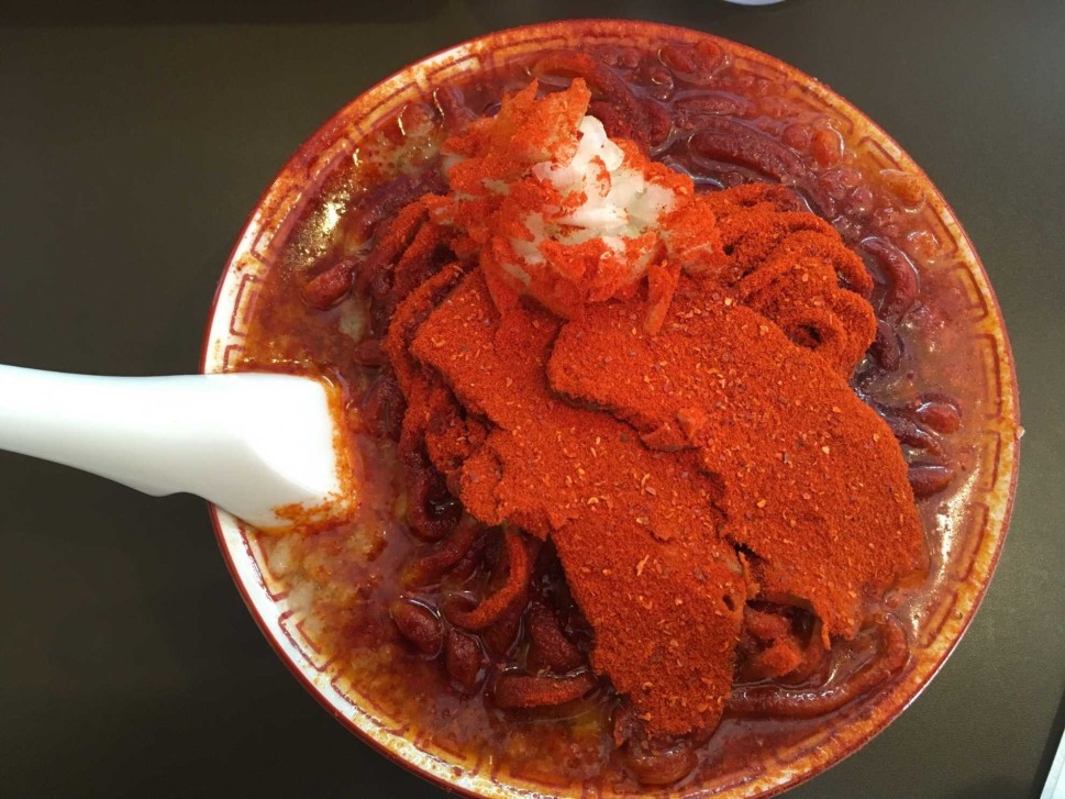 2016.12.に赴任先で食べたラーメンです。すごく気になっていたラーメンでした。開店当時は駐車場が何時もいっぱいで、ようやく食べれました。豚骨のスープで見た目より辛くはありませんが、麺の量が多く満腹になりました。