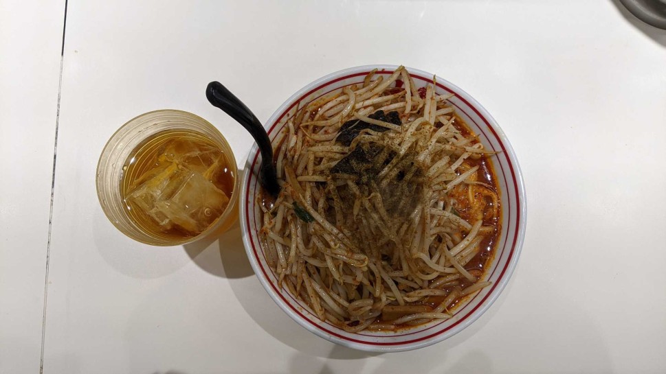 19:30頃に来店6人待ち。もやしが山盛りでスープが薄く感じました。北極らしい辛さが無く物足りなかったかな? でも、お腹いっぱいなりました。ウーロン茶はクーポンのサービスです。もう大盛りは食べれないかなと年齢を感じます😭 ご馳走様でした✨🙇