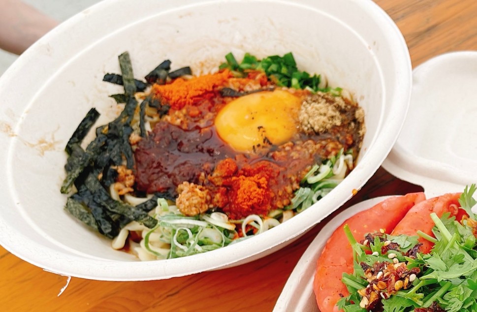 後からじわじわ来る辛さで、この日いただいた6品の中で1番辛かったです!でも辛さよりもおいしさが勝る、きちんとおいしい旨辛まぜそばでした。