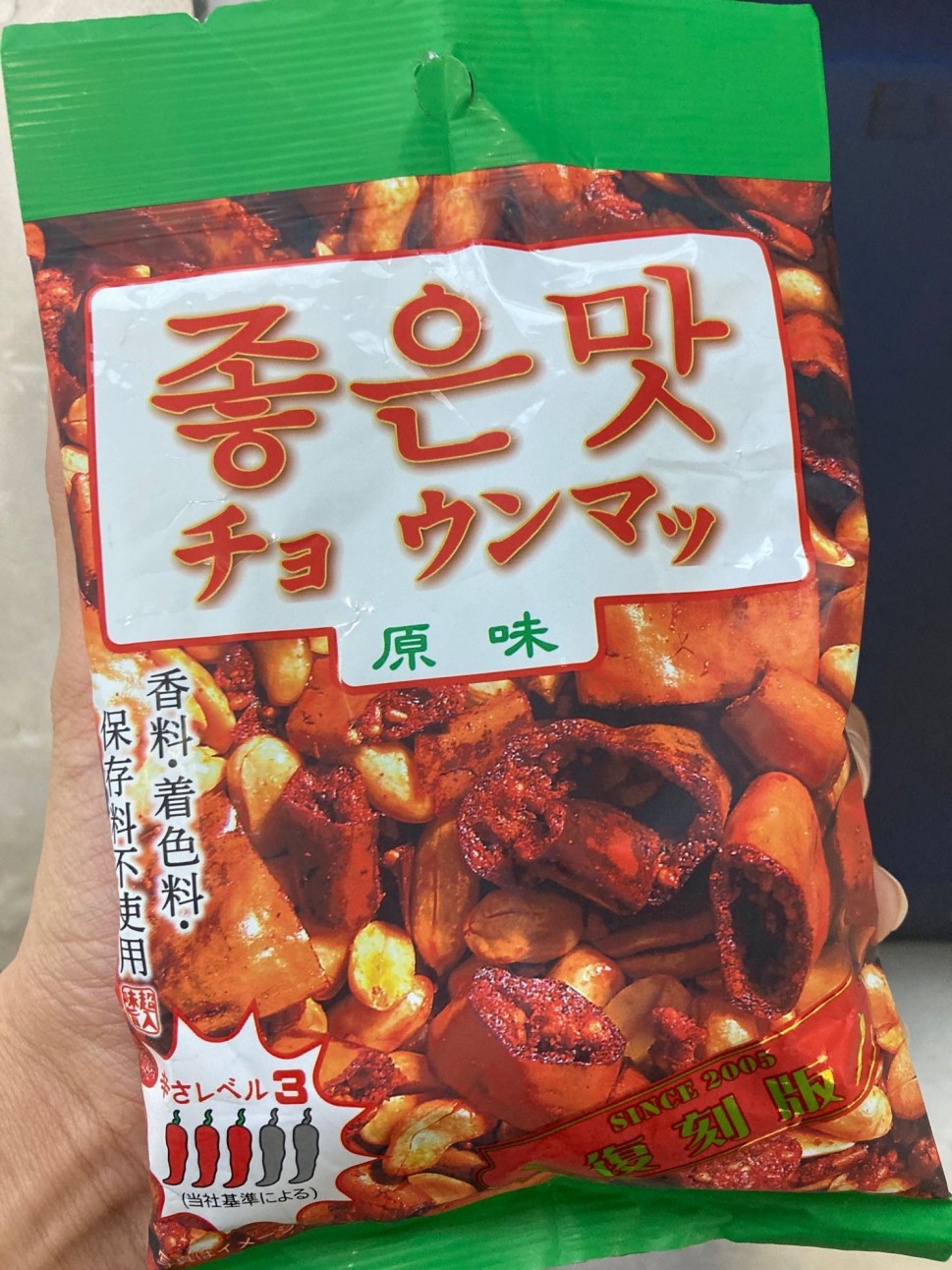パッケージとお菓子の見た目から「辛そう」と思い買ってみましたが、ほぼ辛くないサクサクのお菓子でした!