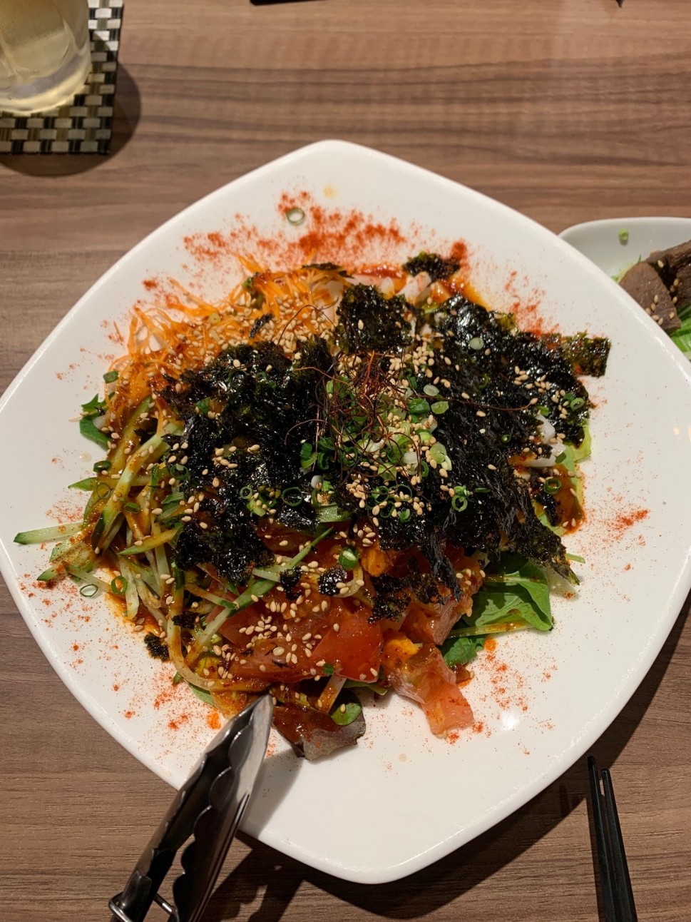韓国のりの風味とちょっとのピリ辛と大根がマッチして、とても美味しく食べれました。一品目に最高です!!