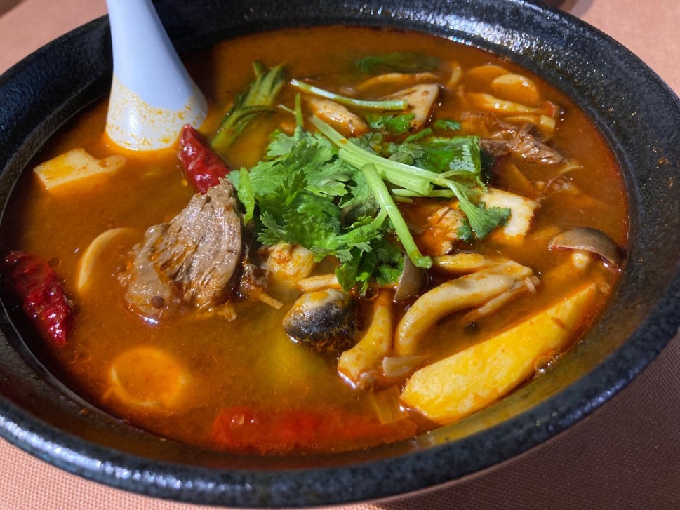 メインの四川風牛肉激辛麺はしっかり辛く、スープを飲むとヒリヒリします。でもとても美味しい!