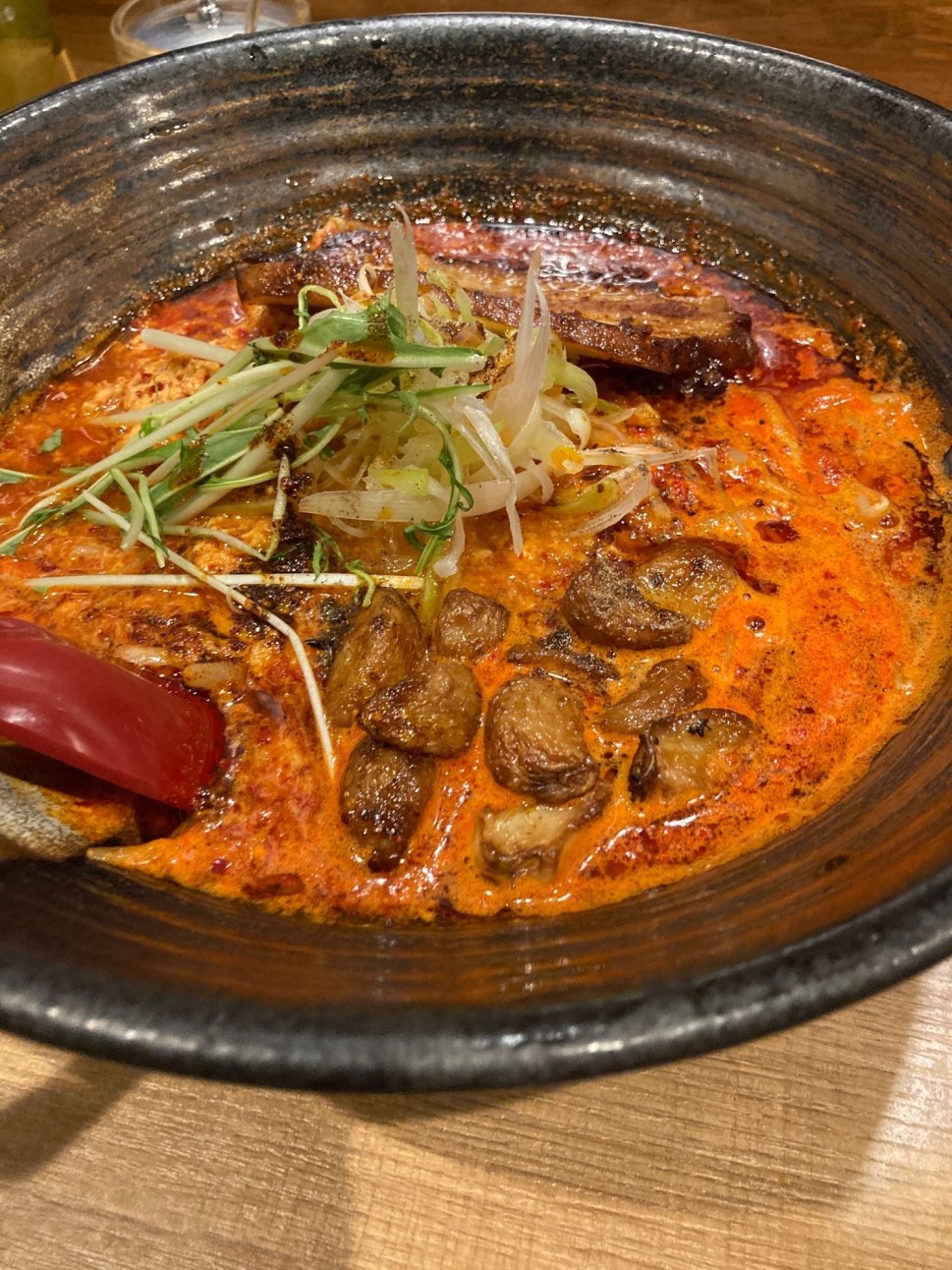 赤い虎。僕は辛さは5辛で十分ですね。溶き卵でドロっとしたスープと絡めて食べる、川崎のニュータンタン麺みたいな麺でした。個人的には、ドロっとした感じが苦手ですが。