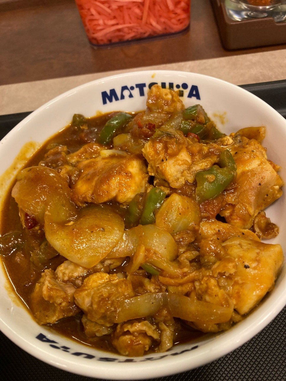 松屋の新作限定メニュー。スリランカの料理みたいで、カレーのジャンルに入れるかは迷いましたが、出し方がカレーだったので。大手チェーン店の辛いメニューにしてはしっかり辛い。野菜の自然な甘さもあり、美味しかったです。チキンもたっぷり入っていてボリューム感もありました。