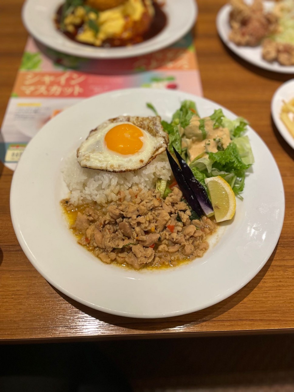 本当はチキンジャンバラヤにしようとしたけど、チキンジャンバラヤは唐辛子マーク🌶🌶、一方のガパオライスさんは🌶🌶🌶だったので、つい。