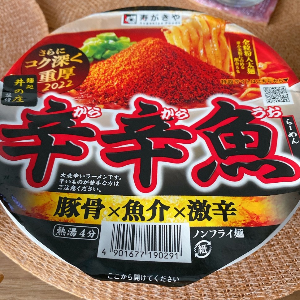 鉄板のカップ麺辛うま麺!!!!大好きです。魚介の味も大好き。通年でお店に置いて欲しいです。2021よりも辛く感じました。牛乳無しで食べられます。しょっぱ辛いのでお水は飲みたいです。