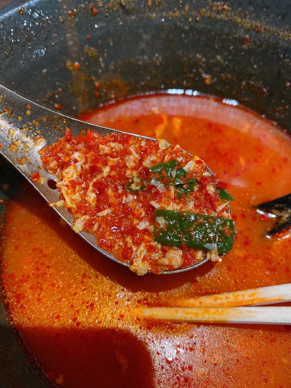 この日はお腹痛くなるのを恐れて煉獄を諦め激辛に。辛さに物足りなさを感じましたが心地よい辛さでペロリ。レンゲで唐辛子をすくって食べるのも美味しいー!食べた後はニンニク臭半端ないです。☺️