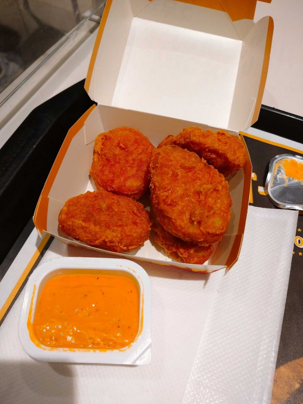 食べた記録。ソースが辛さを引き立てる感じで、ナゲットだけでは辛くないかな。