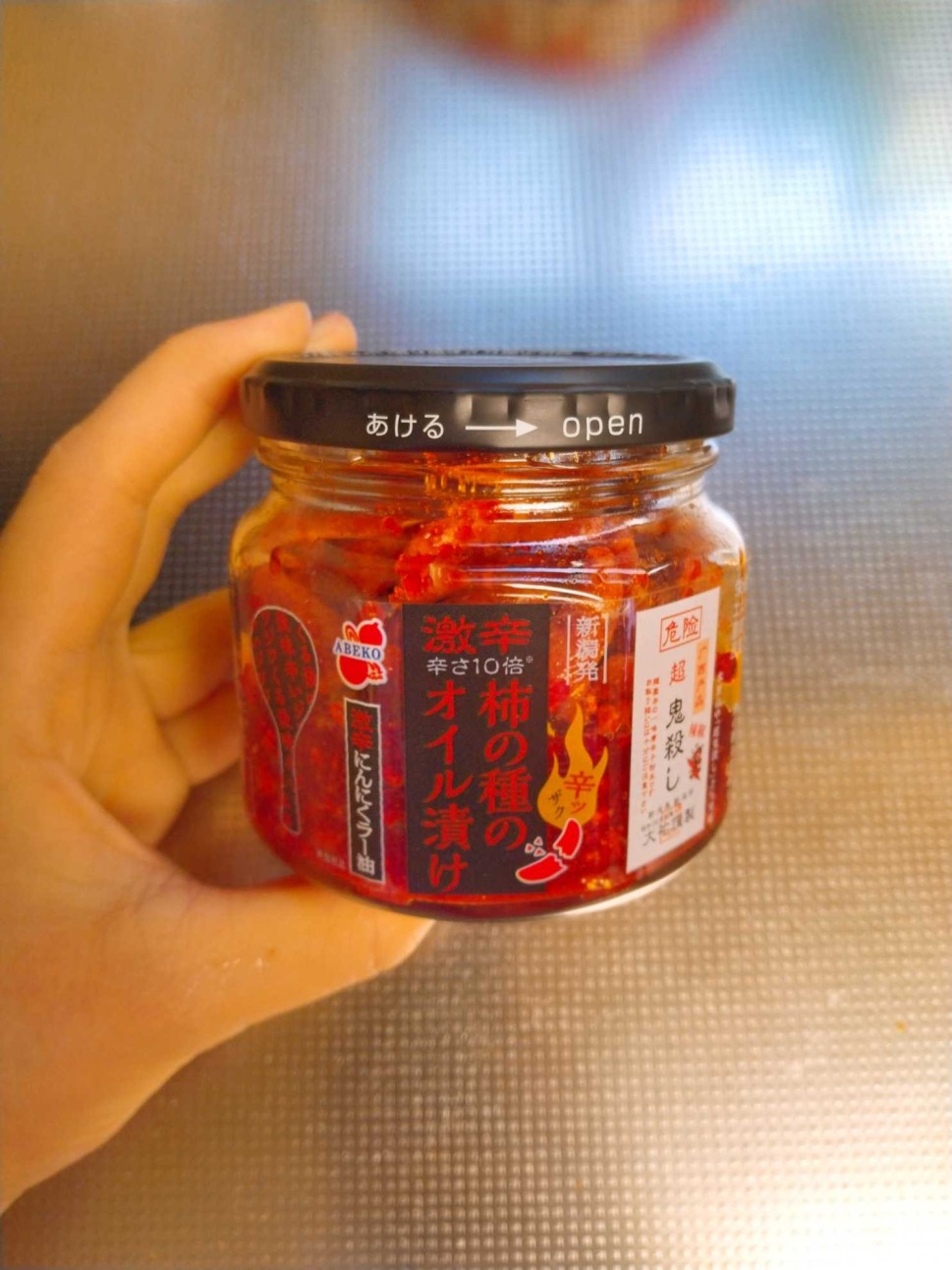 オイル部分は通常のラー油とあまり変わらない印象ですが、柿の種単体で食べると辛いです!
