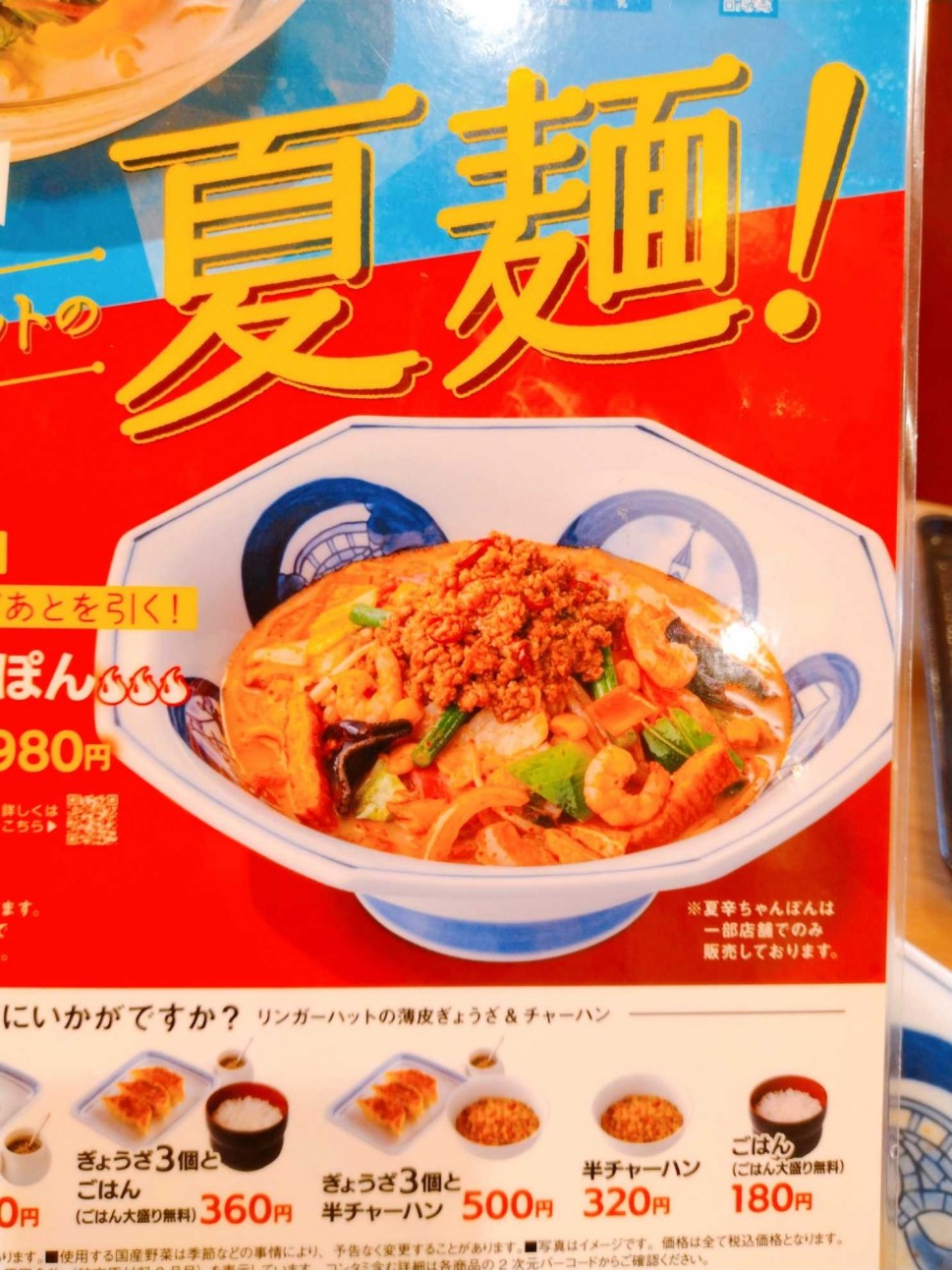 リンガーハットの夏限定メニュー! スープも肉味噌も具材も辛い味付けがされていてピリ辛で美味しかった。そして熱々で提供されるのがまたいい!!