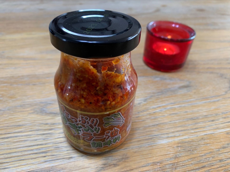 業務スーパーで販売している、ラー油風味調味料。