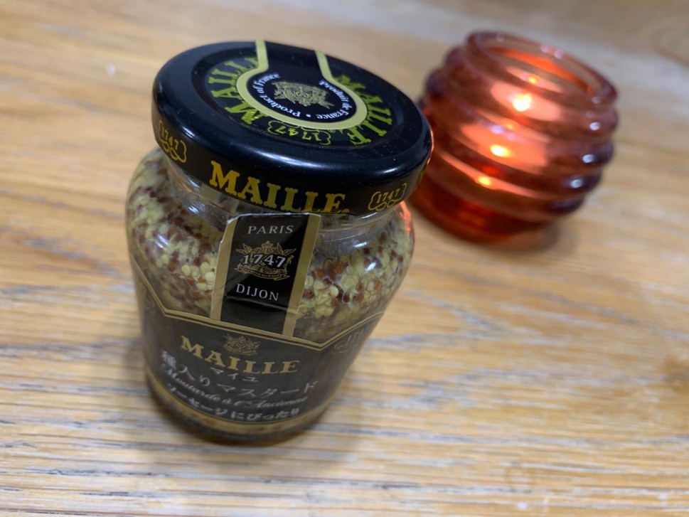 ヨーロッパではド定番の、フランス生まれのつぶつぶマスタード瓶。日本ではエスビー食品が輸入販売しています。