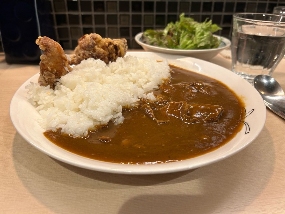 ランチに登場する牛すじ煮込みカレーは同店の人気メニューの一つで、とろとろに煮込まれたビーフのルーの中に、ピリッとした辛さを下に感じます。オーソドックスながら味わい深いです。