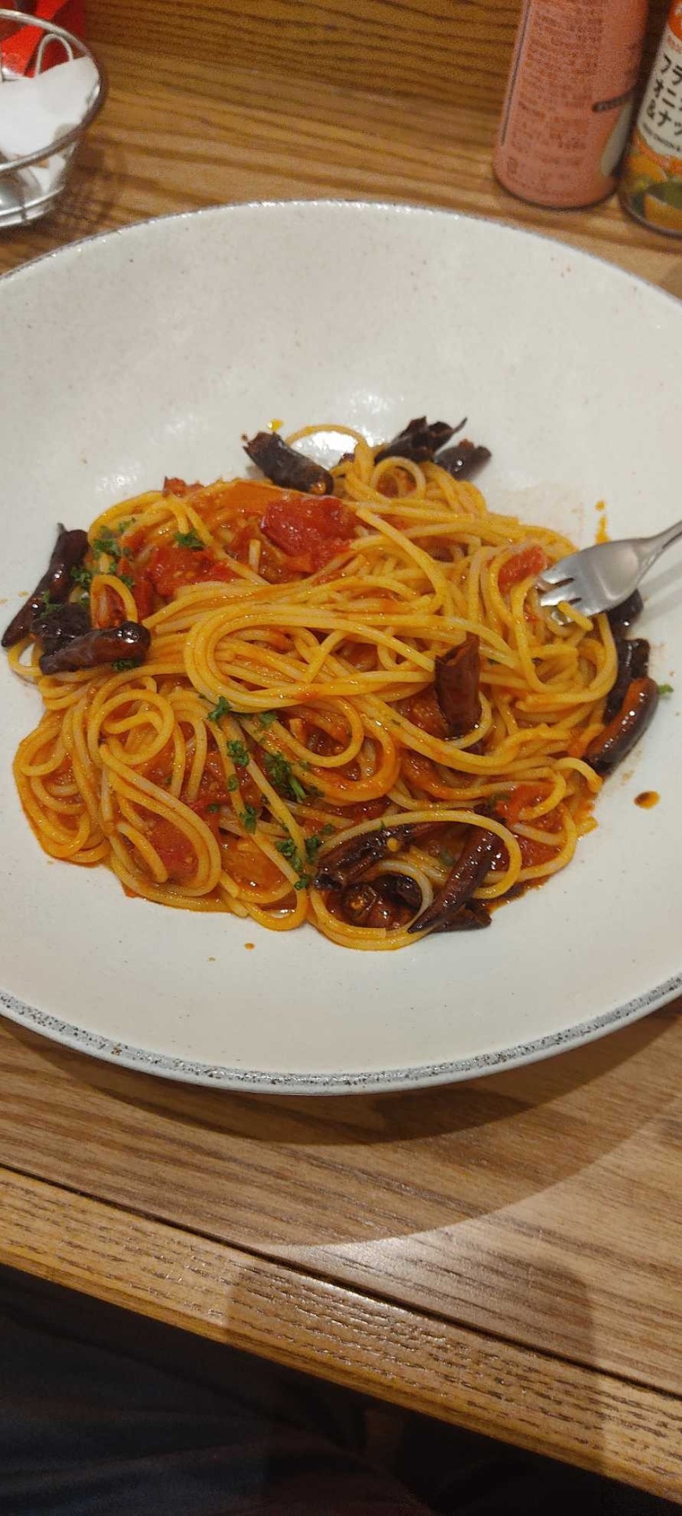 今日は大盛り!週初めの辛さチャージには最高です!もうすぐ能古島にんにくたっぷり本気のペペロンチーノが復活するので、これで食べ納めかもです。