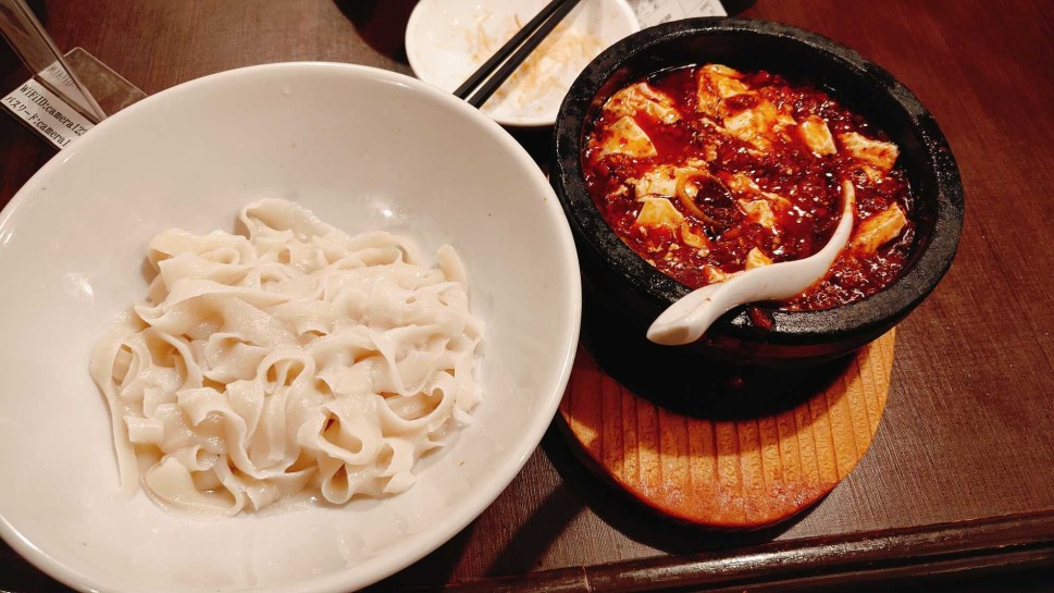 麻婆豆腐といえば陳家私菜と炎麻堂が好きなので赤坂見附来るといつも迷いますが、寒い季節はぐつぐつ熱々のこちらがおすすめ。刀削麺にのっけて食べるスタイル。一番辛いのは地獄辛ですが、激辛くらいが程よい感じで好きです。カウンター席は静かで狭いので地獄辛の湯気が周りの人に迷惑にならないか心配になるのでご注意を。