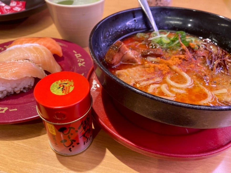 回ってるのは七味唐辛子なので、MY唐辛子で辛さを出しました。3シビにしましたがかなり緩いです。