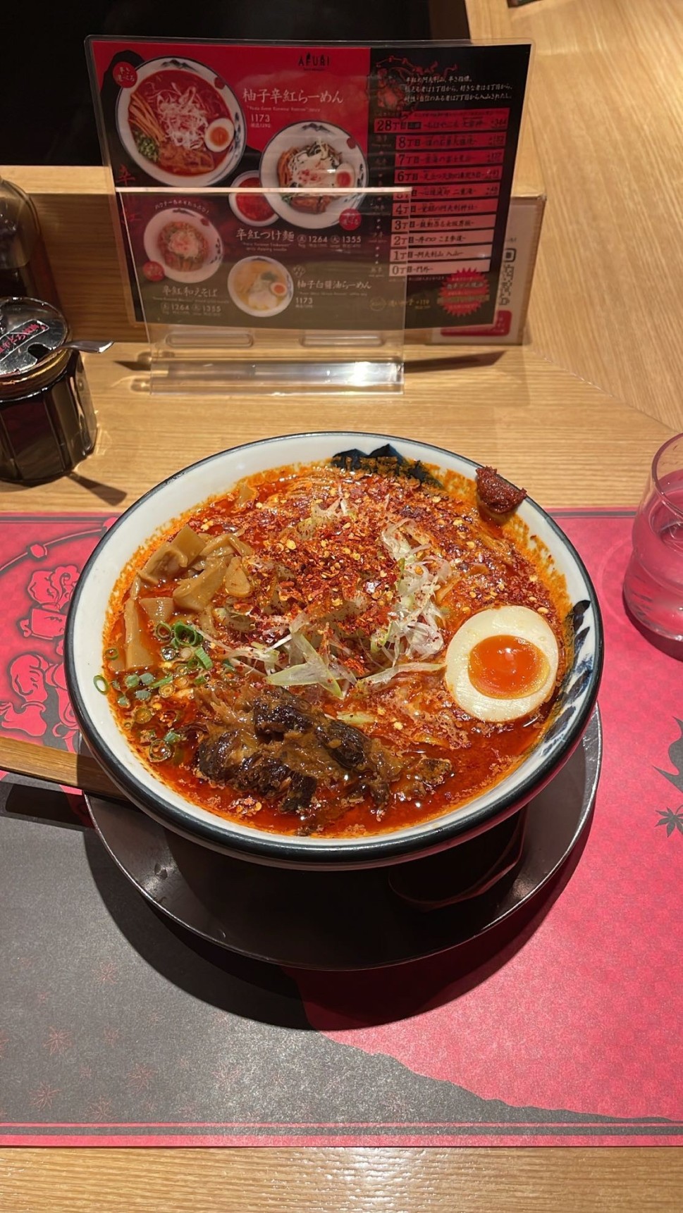 舌に辛さはあまり来ずに喉と胃に来るタイプで、蓄積型の辛さです。スープがスッキリしていて柚子の酸味も効いているので、すっと入ってきますが、すするとむせそうなのでゆっくり食べました。味も美味しくて満足です☺️