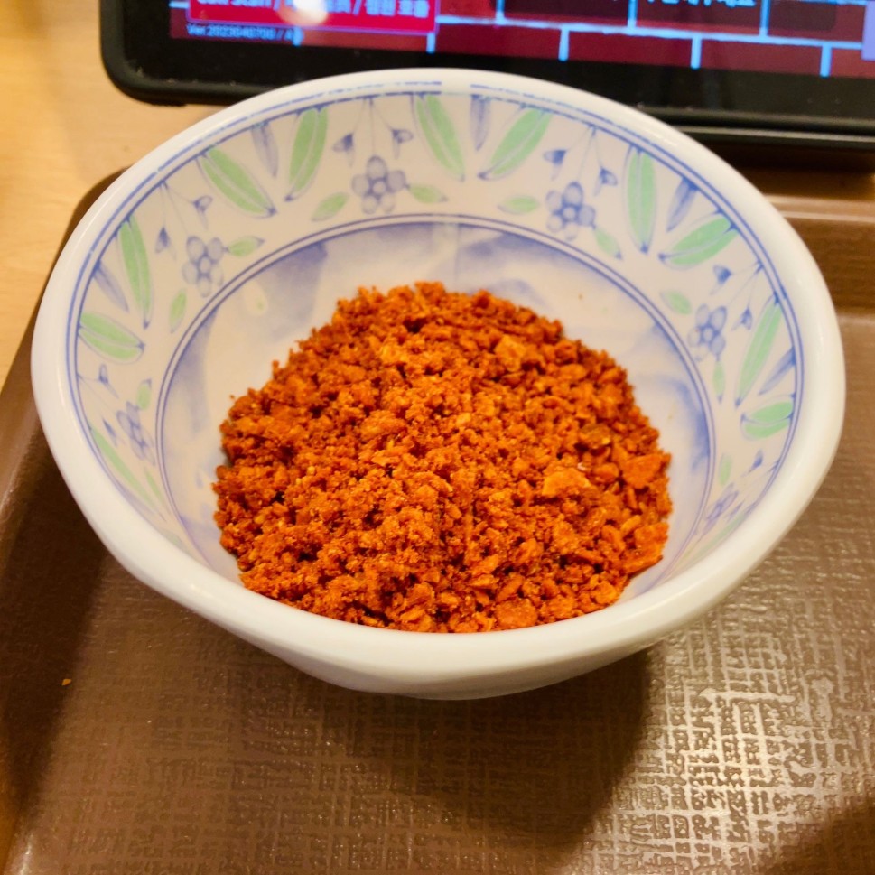 にんにくファイヤー牛丼にふりかけられている粉末がトッピングメニューにあるのを知り注文。辛さが倍増し口の中が爆発しそうでした!