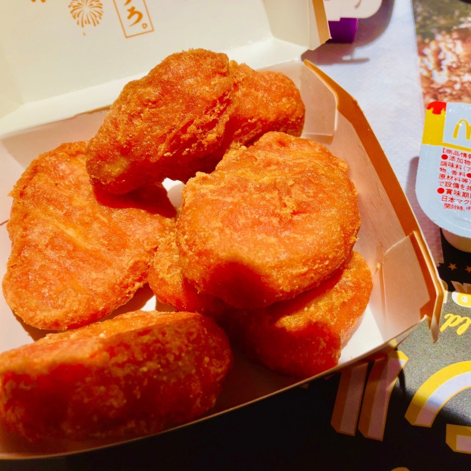 期間限定のスパイシーチキンナゲット!今気づいたんですがチキン“マック”ナゲットという名前なんですね!毎回楽しみにしている商品です。それにしても良い赤みしてますな〜。
