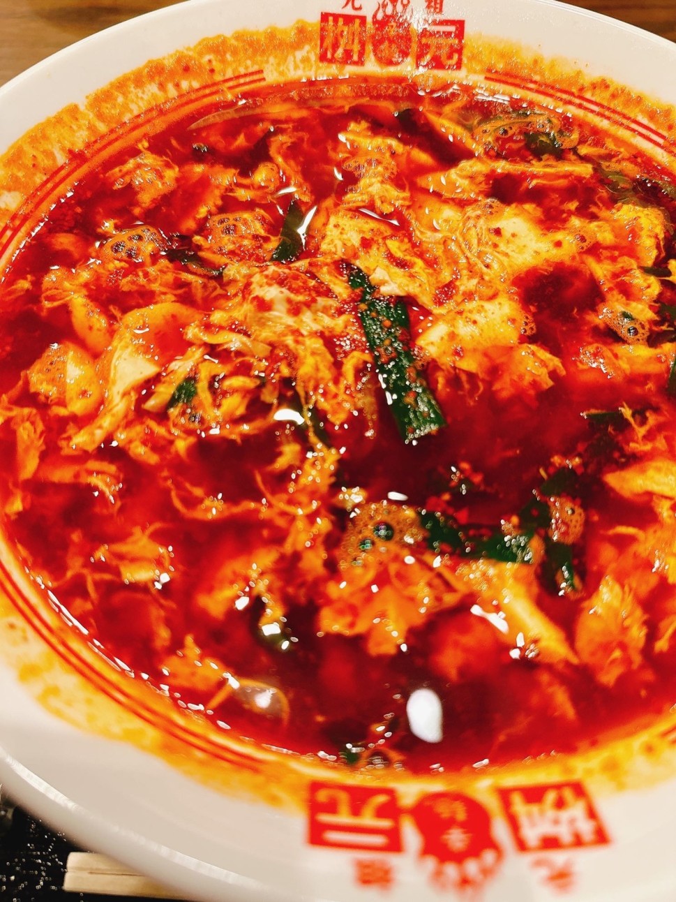 程よく辛い。こんにゃく麺とスープが合います。スープまでしっかり完飲です。