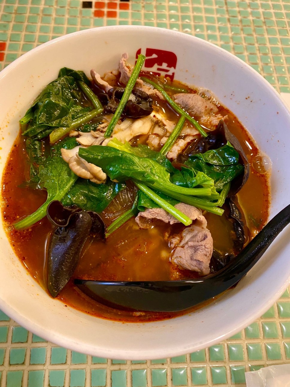 トッピングはラム・ほうれん草・きくらげ・まいたけ。いつもあんまり挑戦できず。この組み合わせは間違いない!