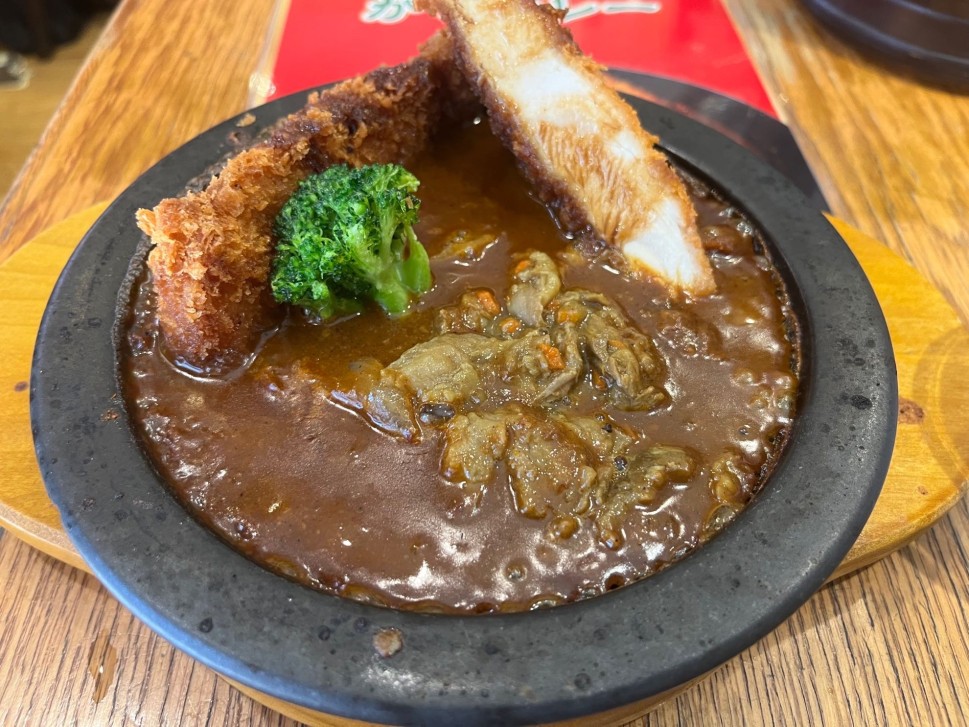 カレーの名店らしくお昼時にはいつも人が並んでいたので入ってみましたが無料で超激辛🔥に出来たので牛すじ煮込みささみかつカレーを注文しました。