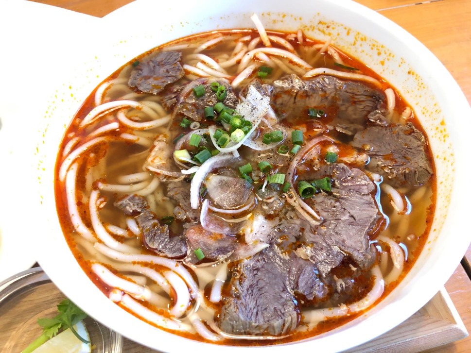 フォーは平打ちだけど、ブンっていう丸い太めのお米の麺。