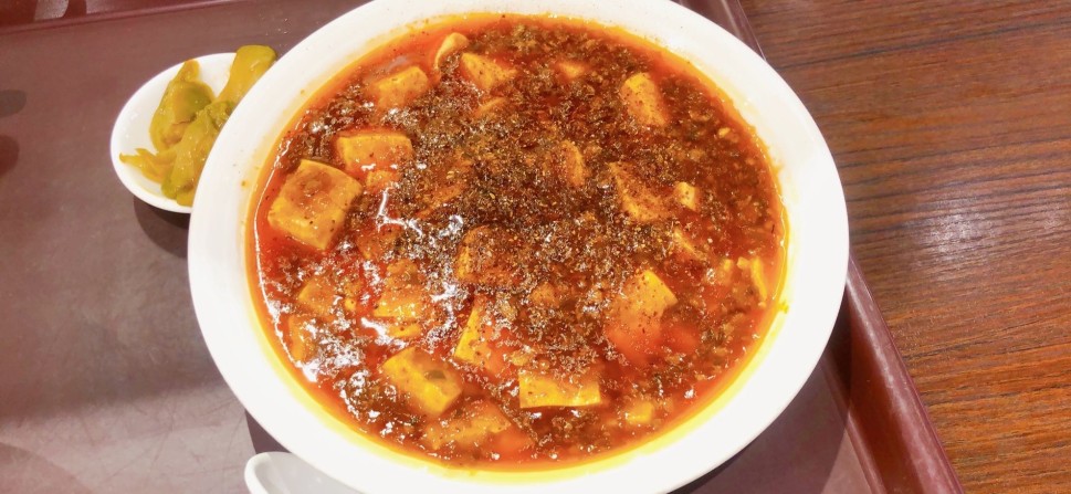 具は豆腐メイン、挽肉少なめ、ネギは少なくて超細かいタイプ。花椒はカウンターに置いてあって、お好みでかけるシステム。きちんと香りも痺れもある花椒だったのでかけすぎ注意笑