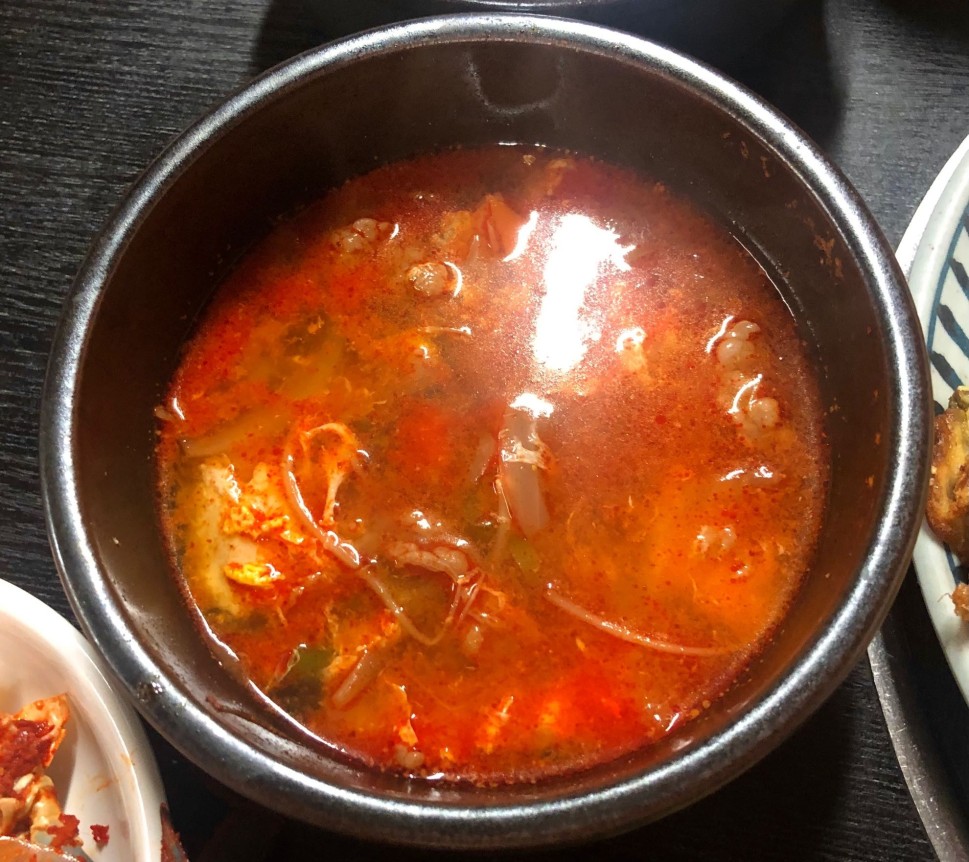 一緒に食べたキムチやケジャンの方が辛くて、ユッケジャンの辛さがかなり落ち着いている印象に…