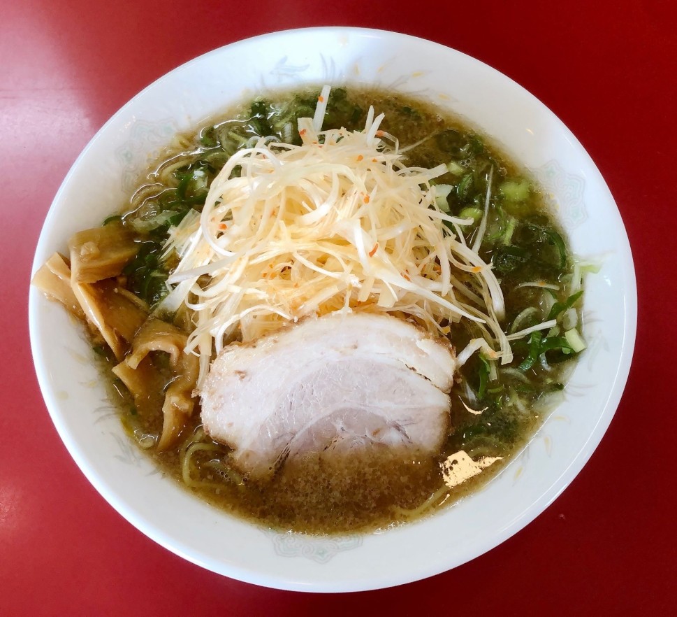 辛い白髪ネギが乗ったラーメンが食べたくて笑
